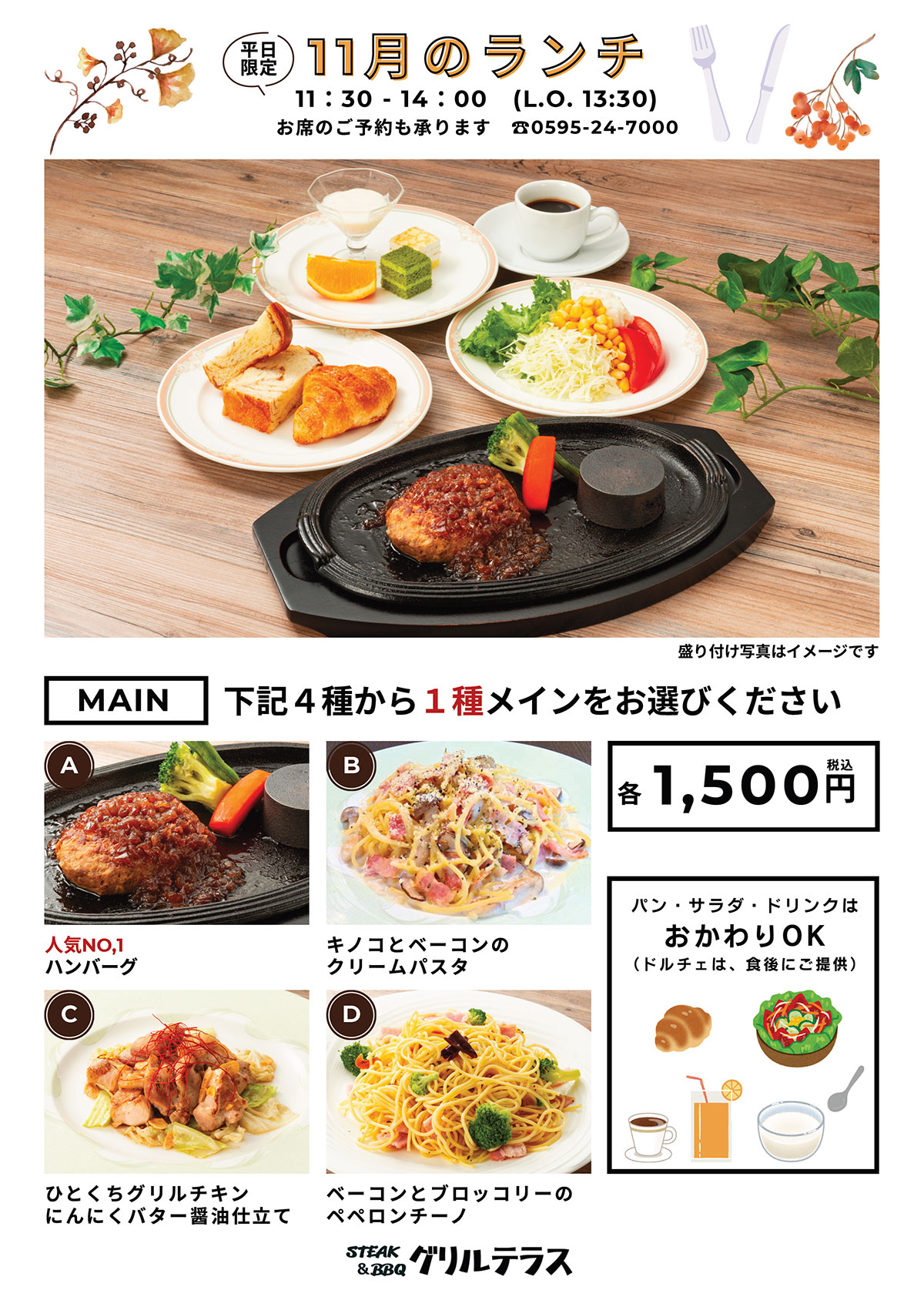 - 鉄板グリルコースは《土・日・祝 営業》。平日は要予約。